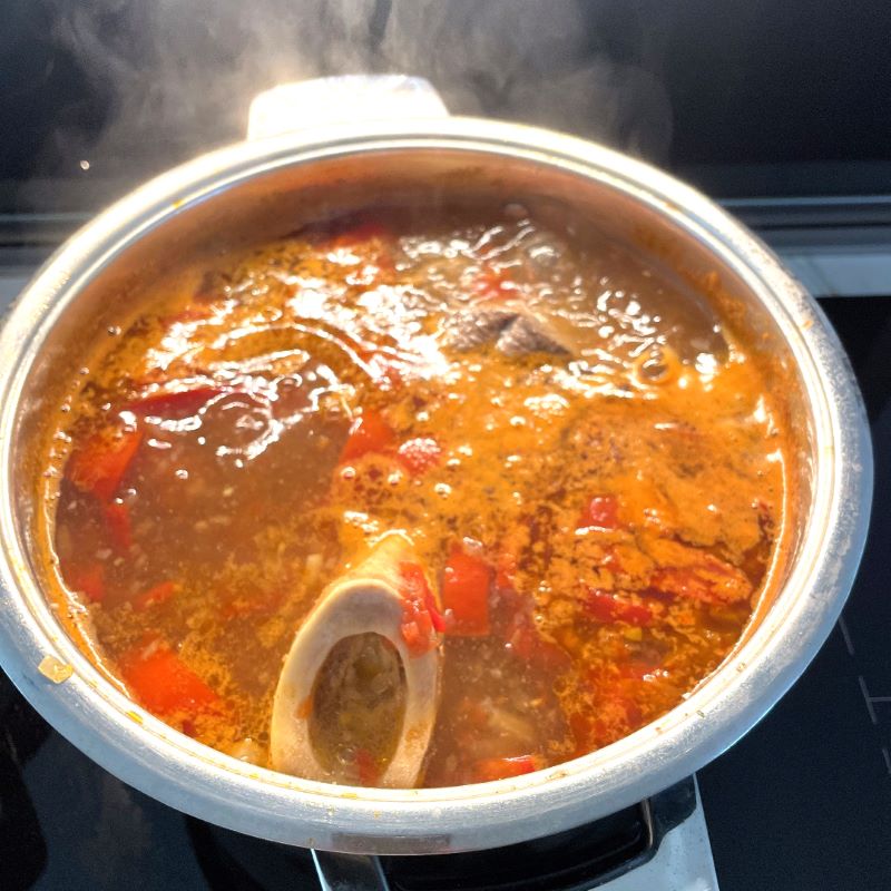 VERVOLGENS NEEM JE VOCHT VAN DE KALFS GEHAKT BALLETJES VOEG DEZE AAN JE SOEP . LAAT DIT VERDER KOKEN ZONDER DEKSEL DAN BEKOM JE DE MEEST INTENSE SMAAK .